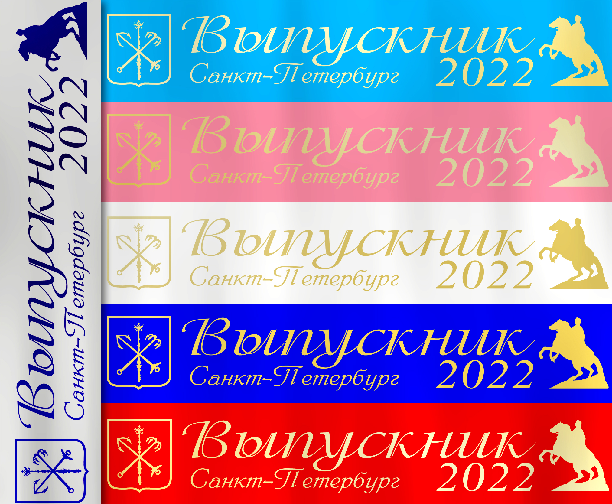 Атласная лента "Выпускник 2022 Санкт-Петербурга" Медный всадник в ассортименте