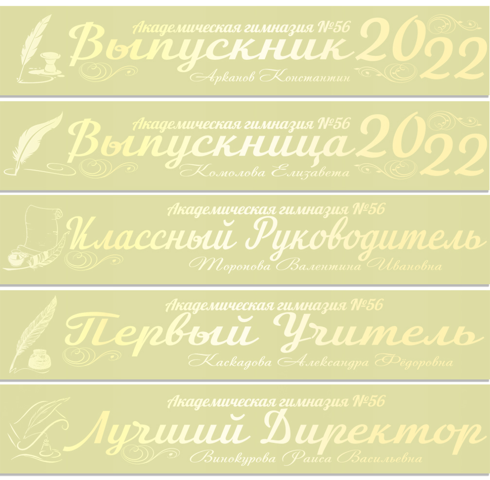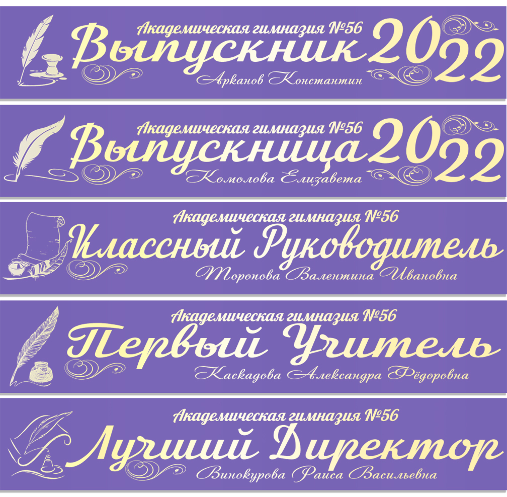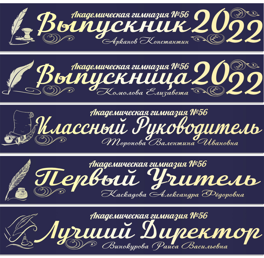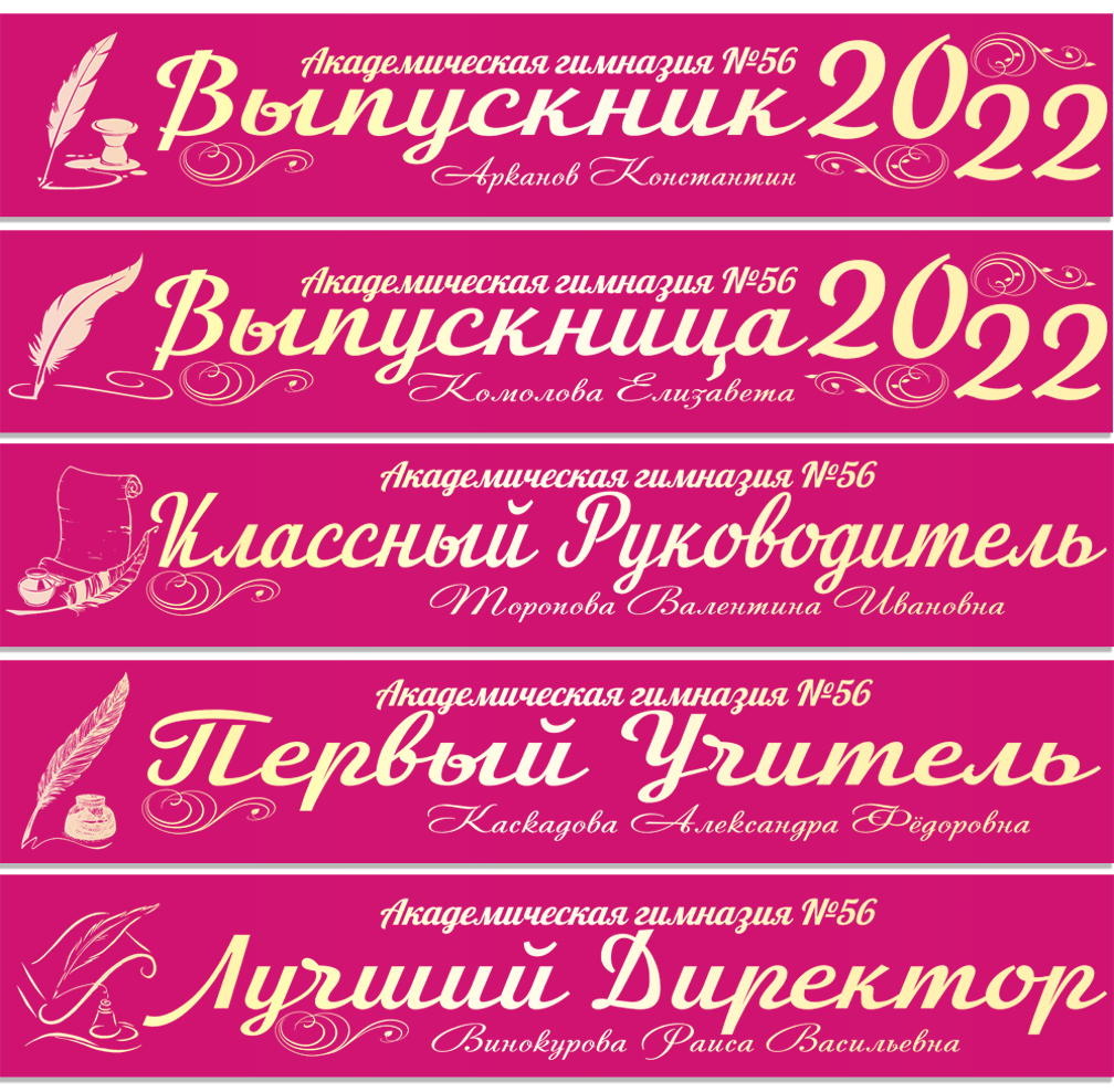 Именная атласная лента Выпускникам лицея и педагогам" перо в ассортименте