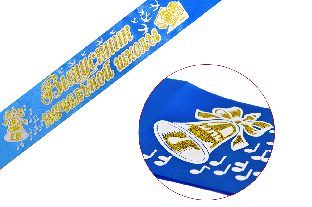Атласная лента с эффектом 3D "Выпускник начальной школы", голубая
