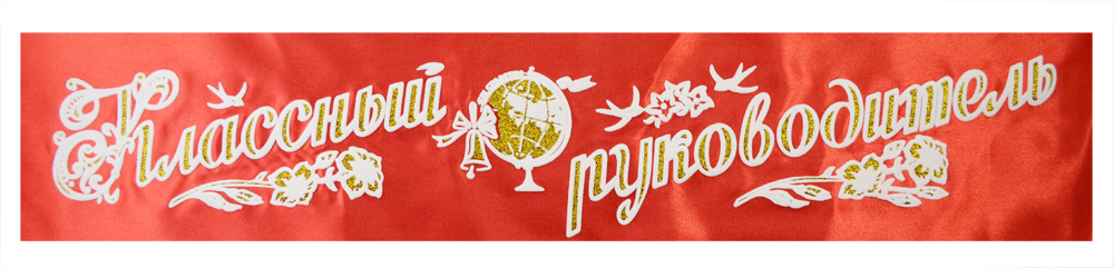 Атласная лента с эффектом 3D "Классный руководитель", глобус, красная 375А