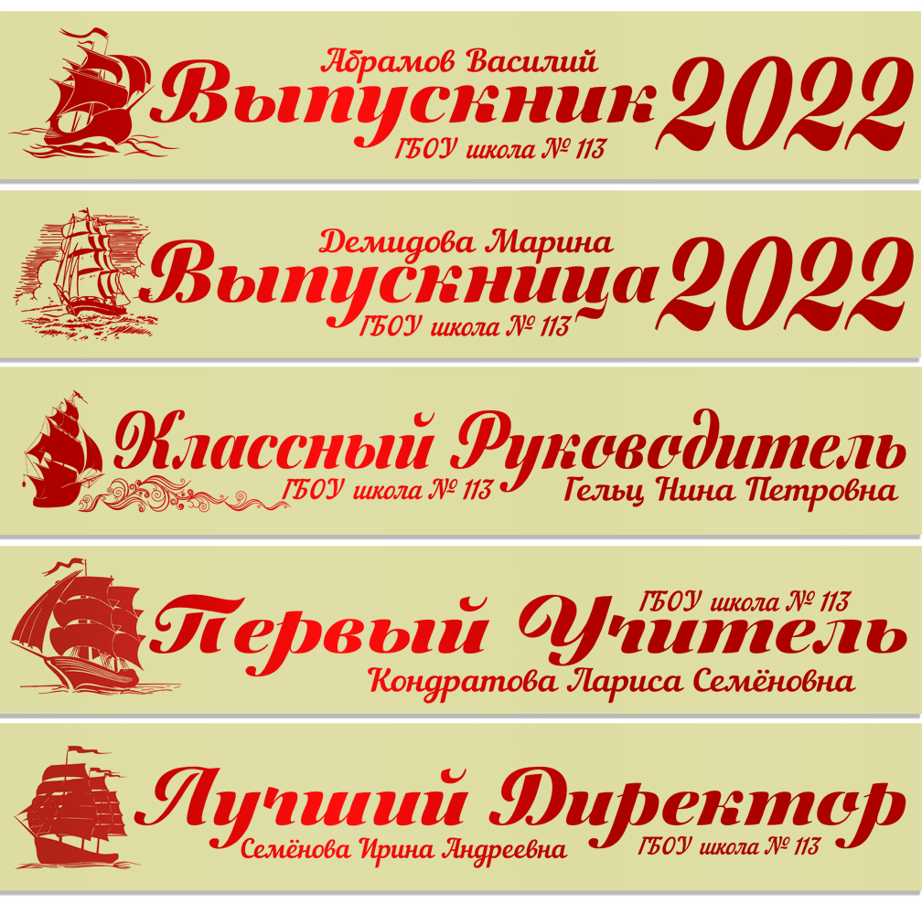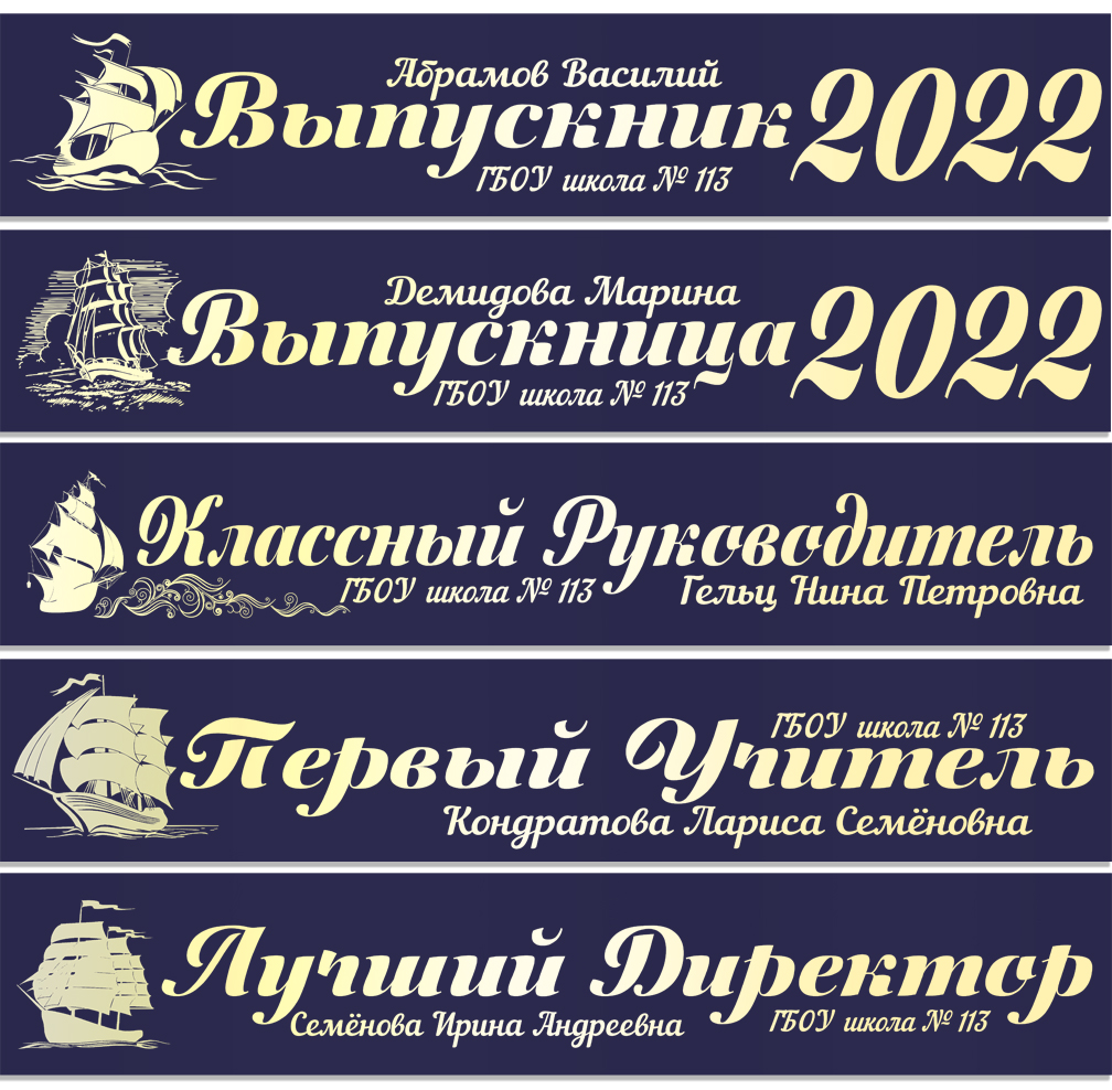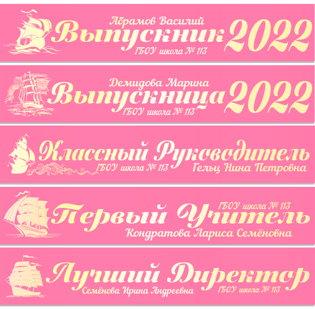 Именная атласная лента "Выпускникам и педагогам" корабль в ассортименте**