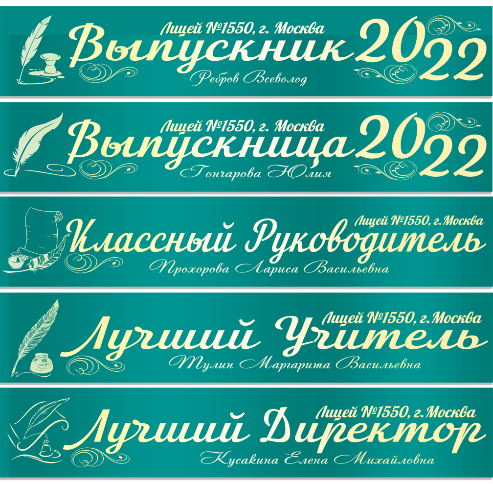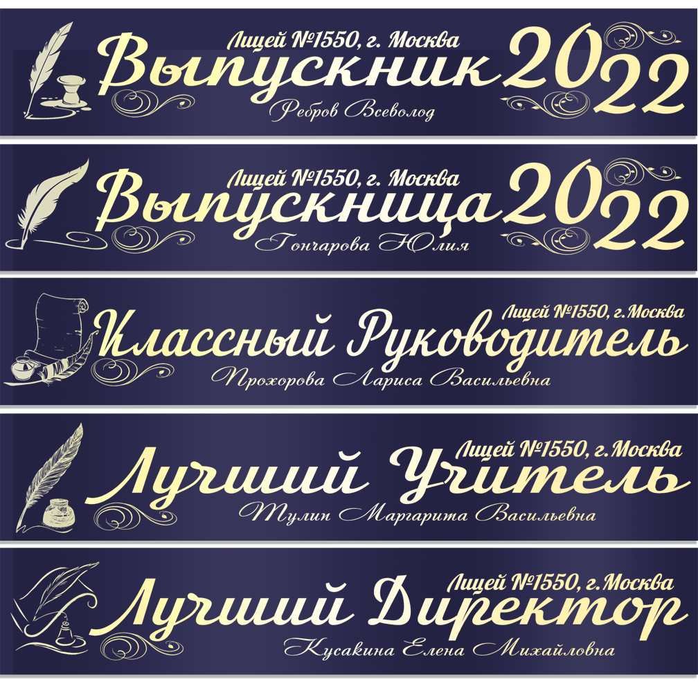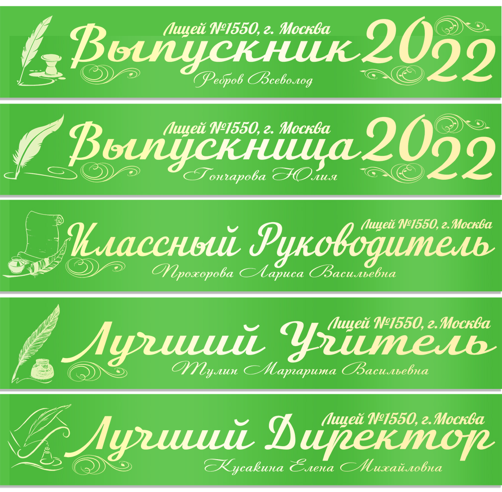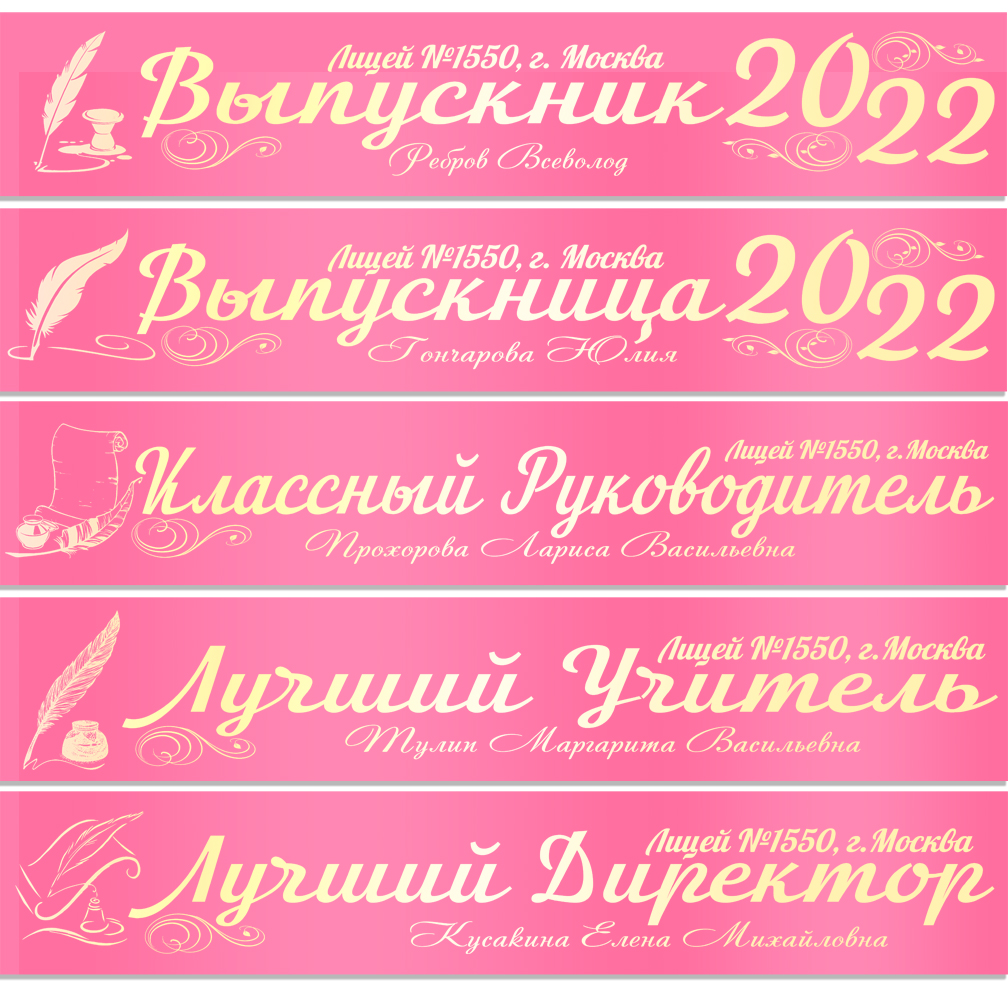Именная атласная лента "Выпускникам лицея и педагогам" перо в ассортименте**