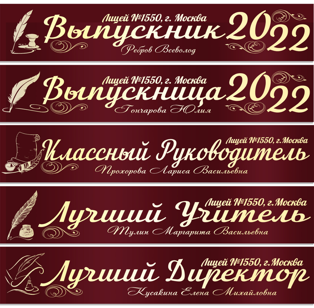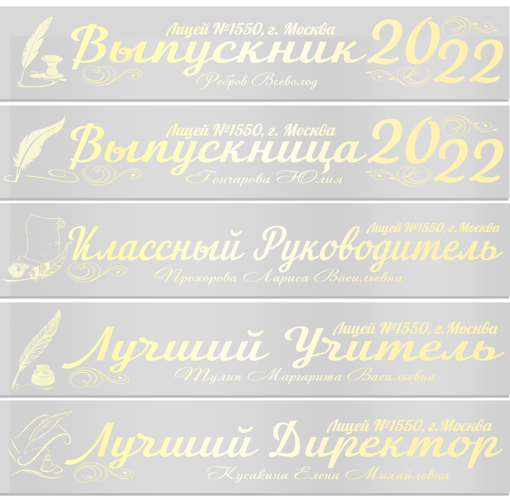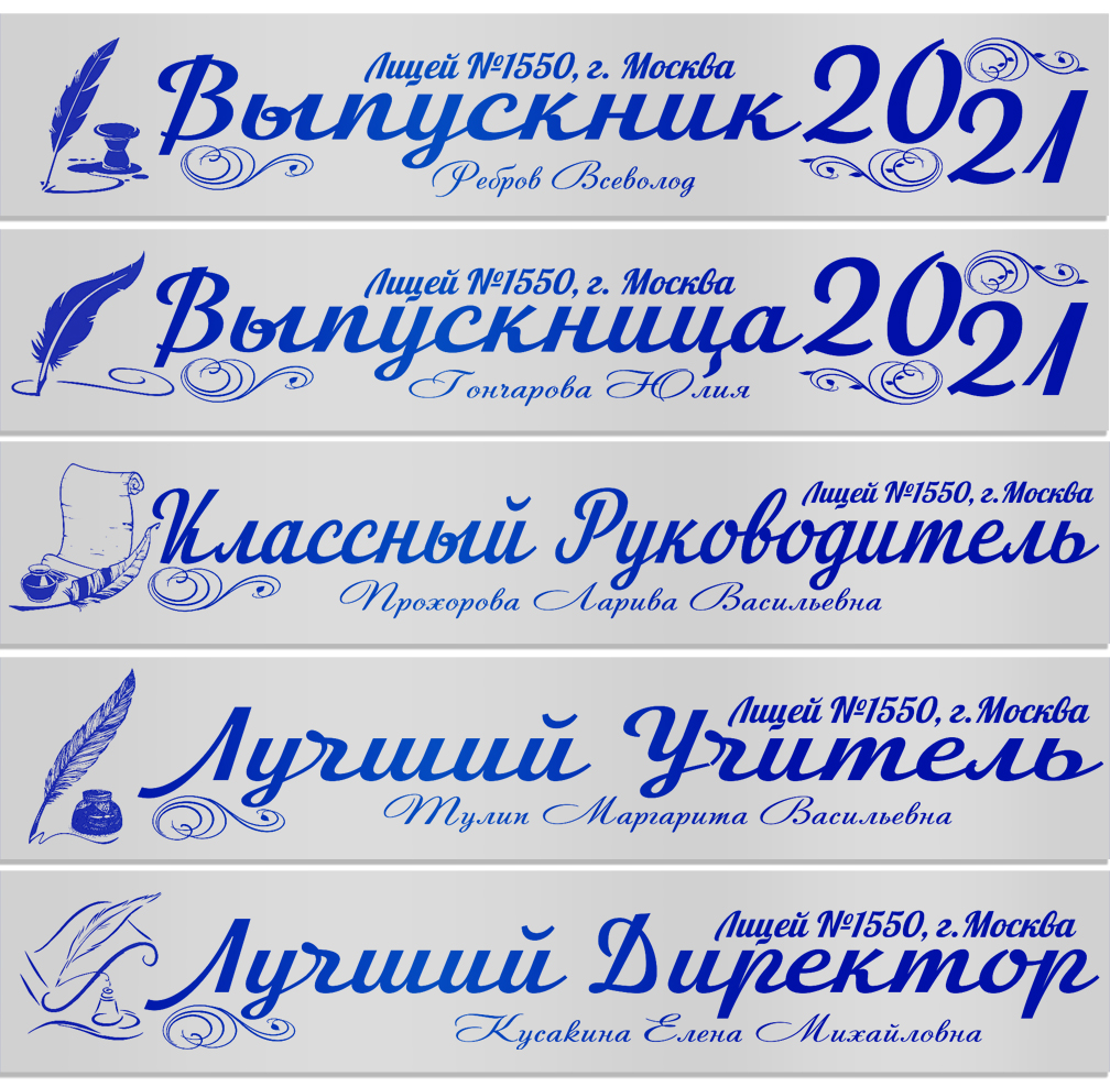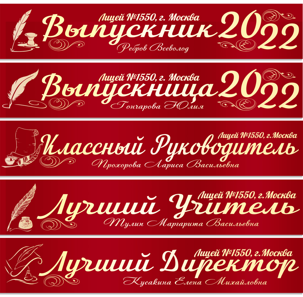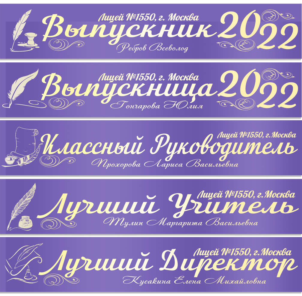 Именная атласная лента "Выпускникам лицея и педагогам" перо в ассортименте**