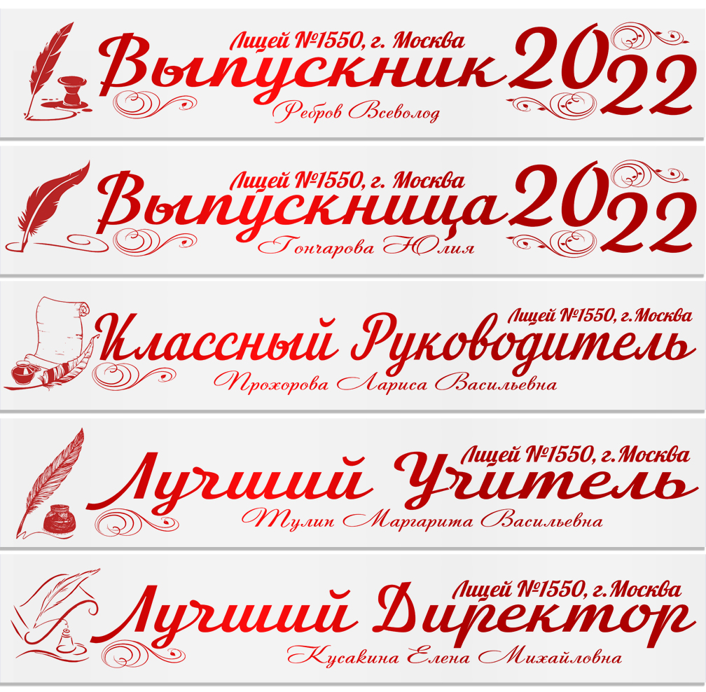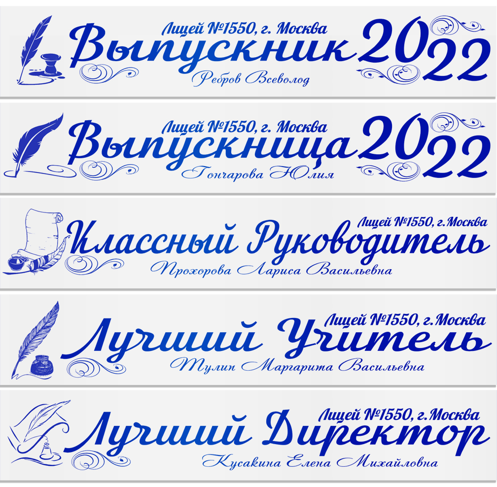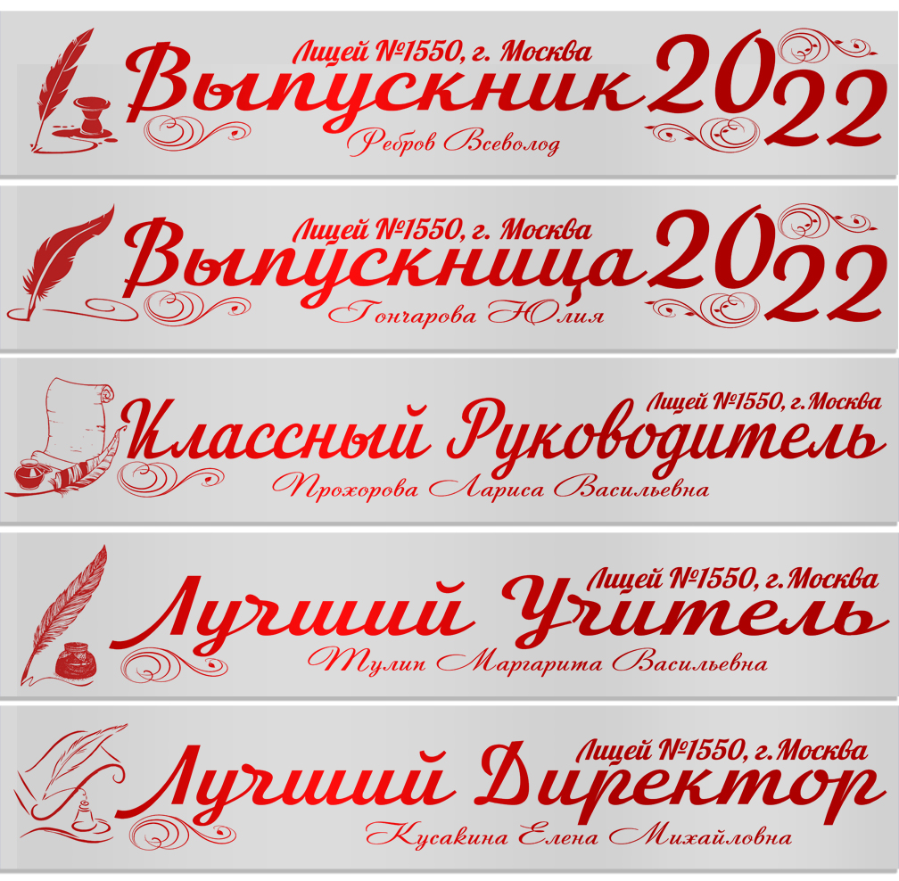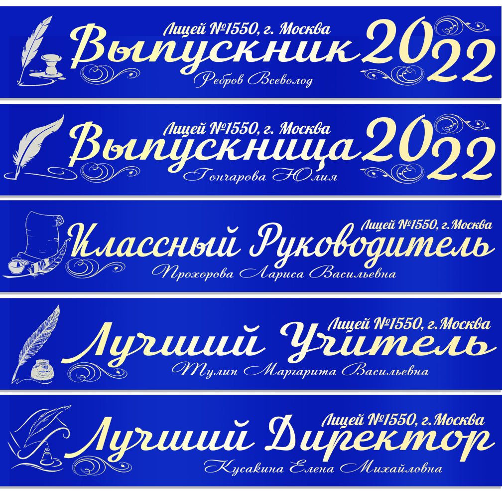 Именная атласная лента "Выпускникам лицея и педагогам" перо в ассортименте**