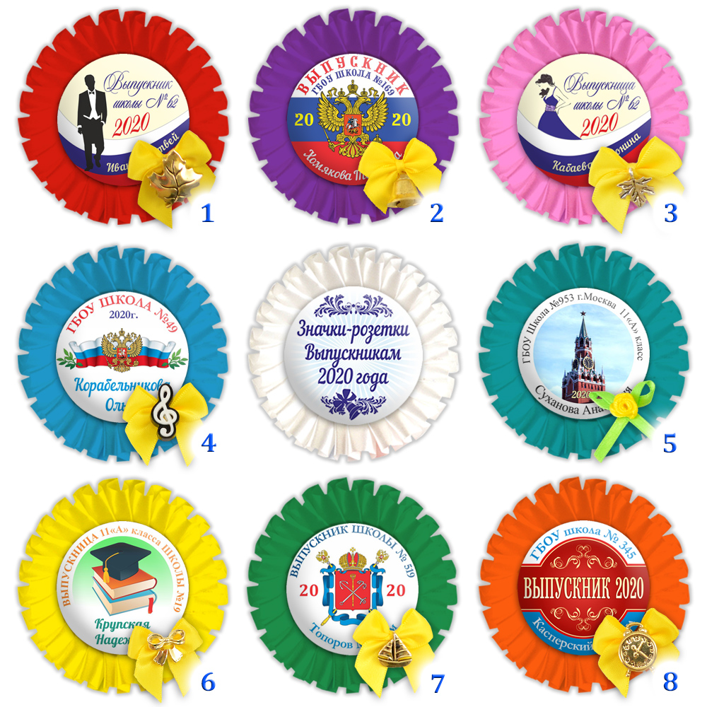 Именной значок-розетка для выпускников с подвеской в ассортименте