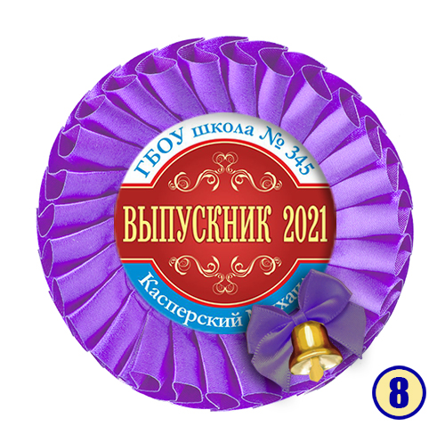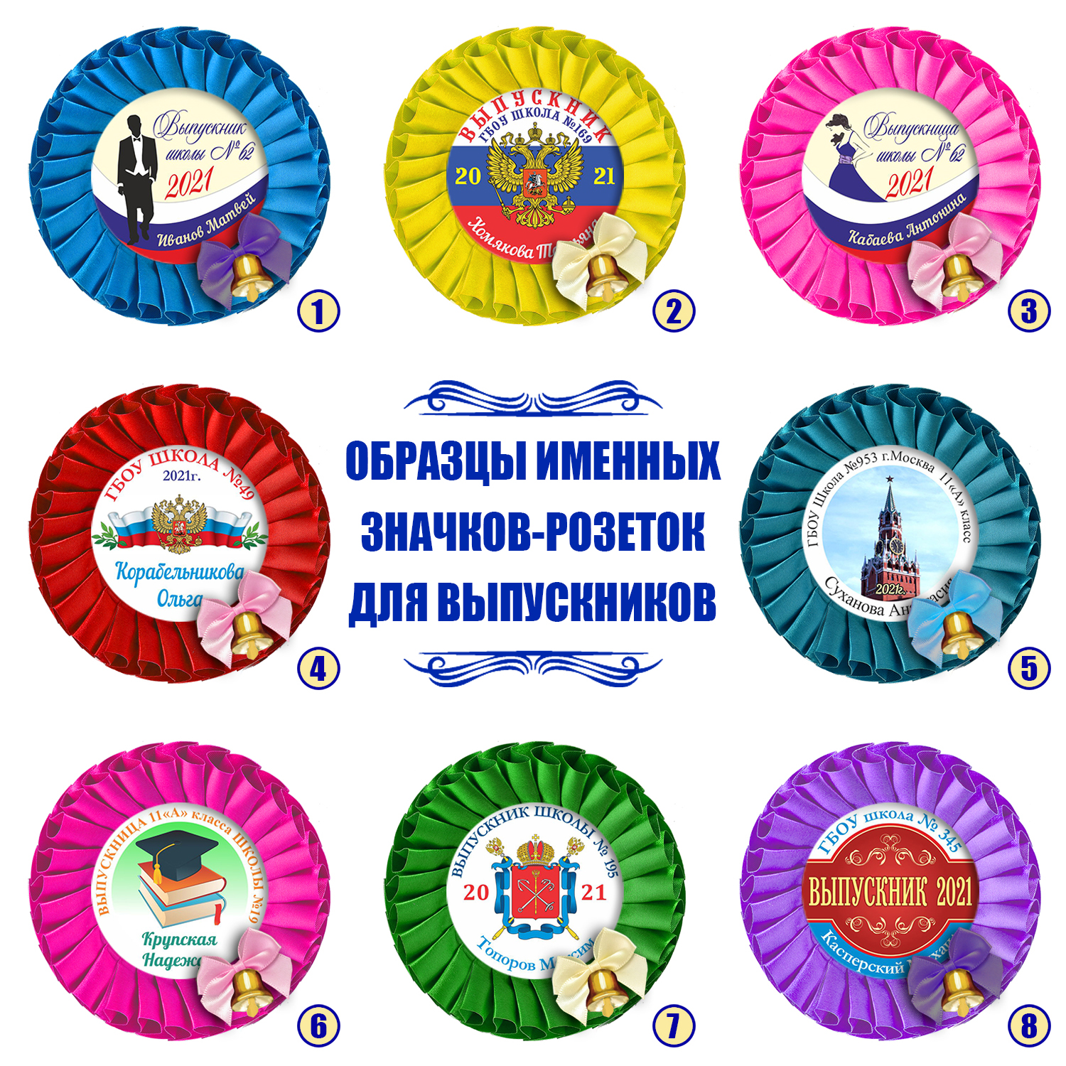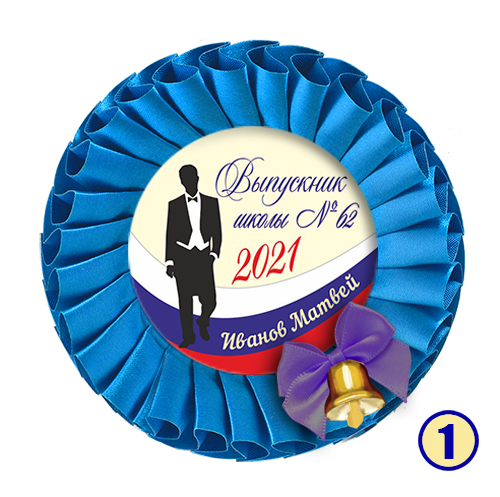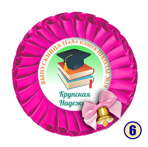 Индивидуальная одноярусная розетка, украшена навесным колокольчиком и бантиком, серединка из прочного пластика с яркой картинкой. На обороте булавка с удобным креплением. Замечательный памятный подарок на окончание учебного заведения, который дополнит образ выпускника.
