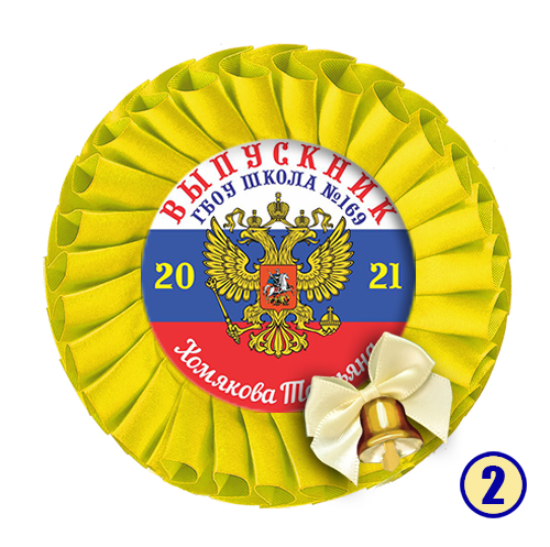 Индивидуальная наградная розетка "Выпускник школы" с колокольчиком