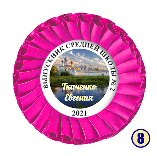 Индивидуальная одноярусная розетка, серединка из прочного пластика с яркой картинкой. На обороте булавка с удобным креплением. Замечательный памятный подарок на окончание учебного заведения, который дополнит образ выпускника.
