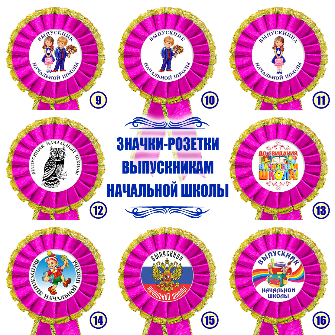 Значок-розетка из атласной ленты *Выпускник начальной школы*