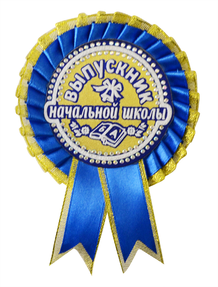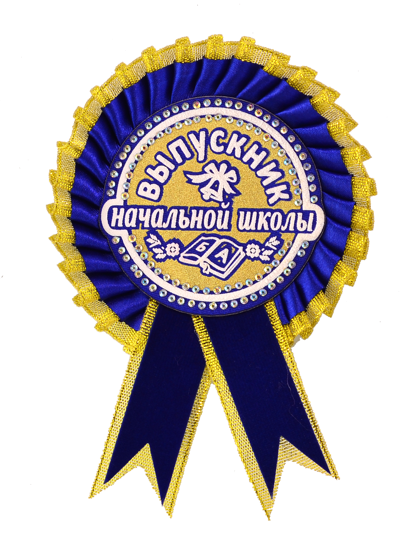 Значок-розетка со стразами "Выпускник начальной школы" объемные буквы, парча, бархат синий