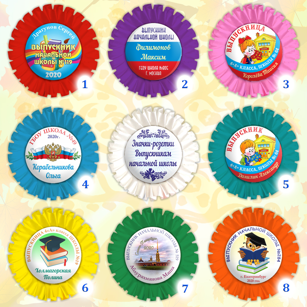 Именной значок-розетка для выпускника начальной школы