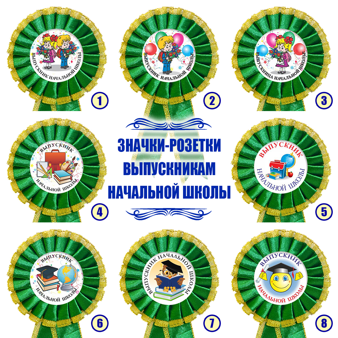 Значок-розетка из атласной ленты *Выпускник начальной школы*