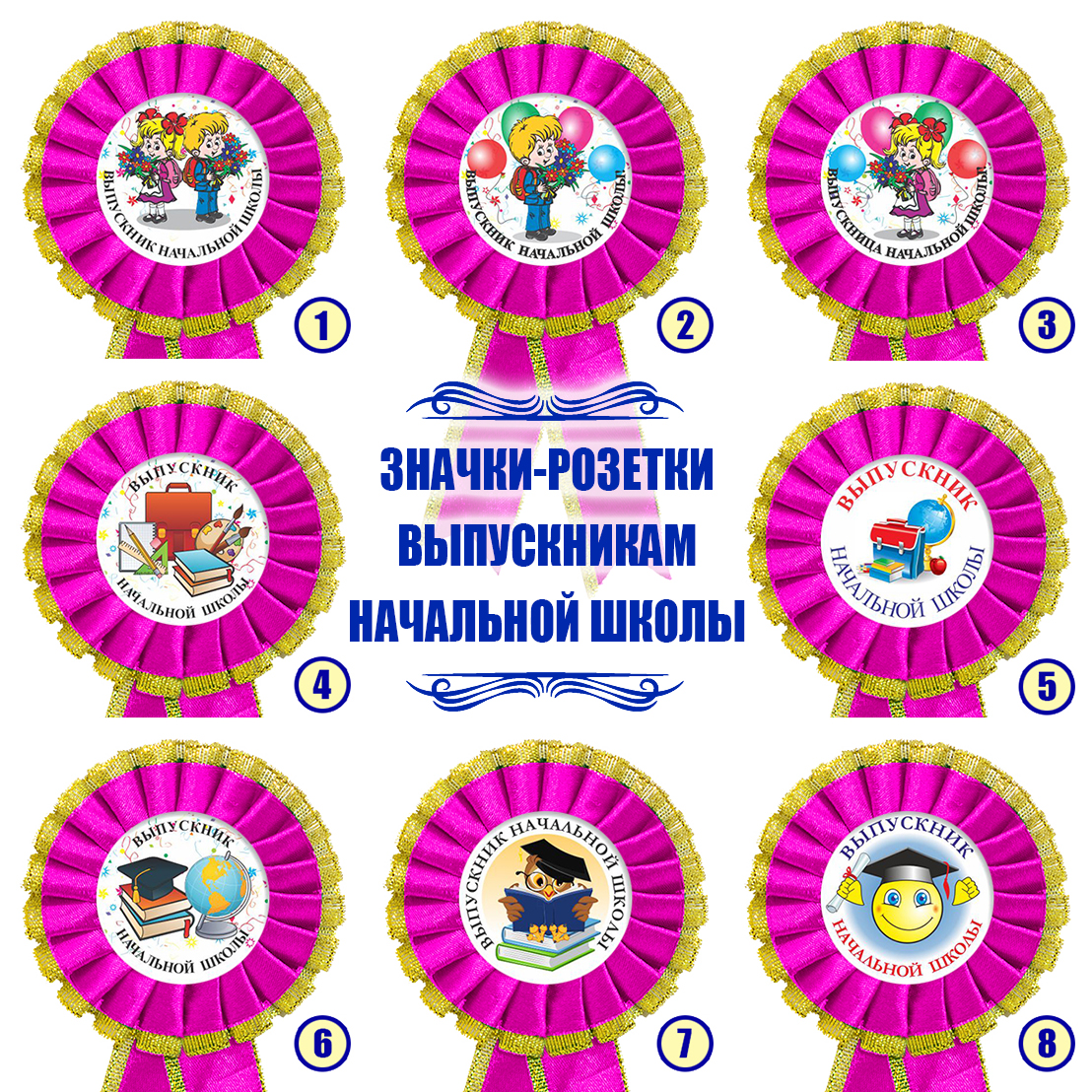 Значок-розетка из атласной ленты *Выпускник начальной школы*
