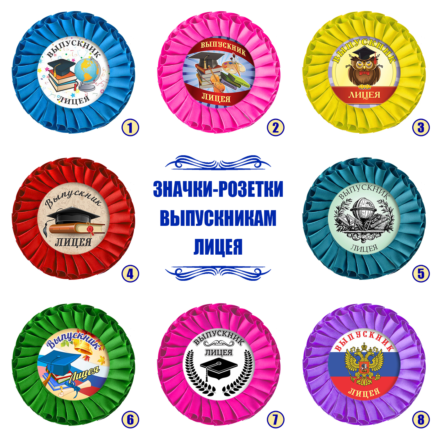Одноярусная розетка, серединка из прочного пластика с яркой картинкой. На обороте булавка с удобным креплением. Замечательный памятный подарок на окончание учебного заведения, который дополнит образ выпускника.