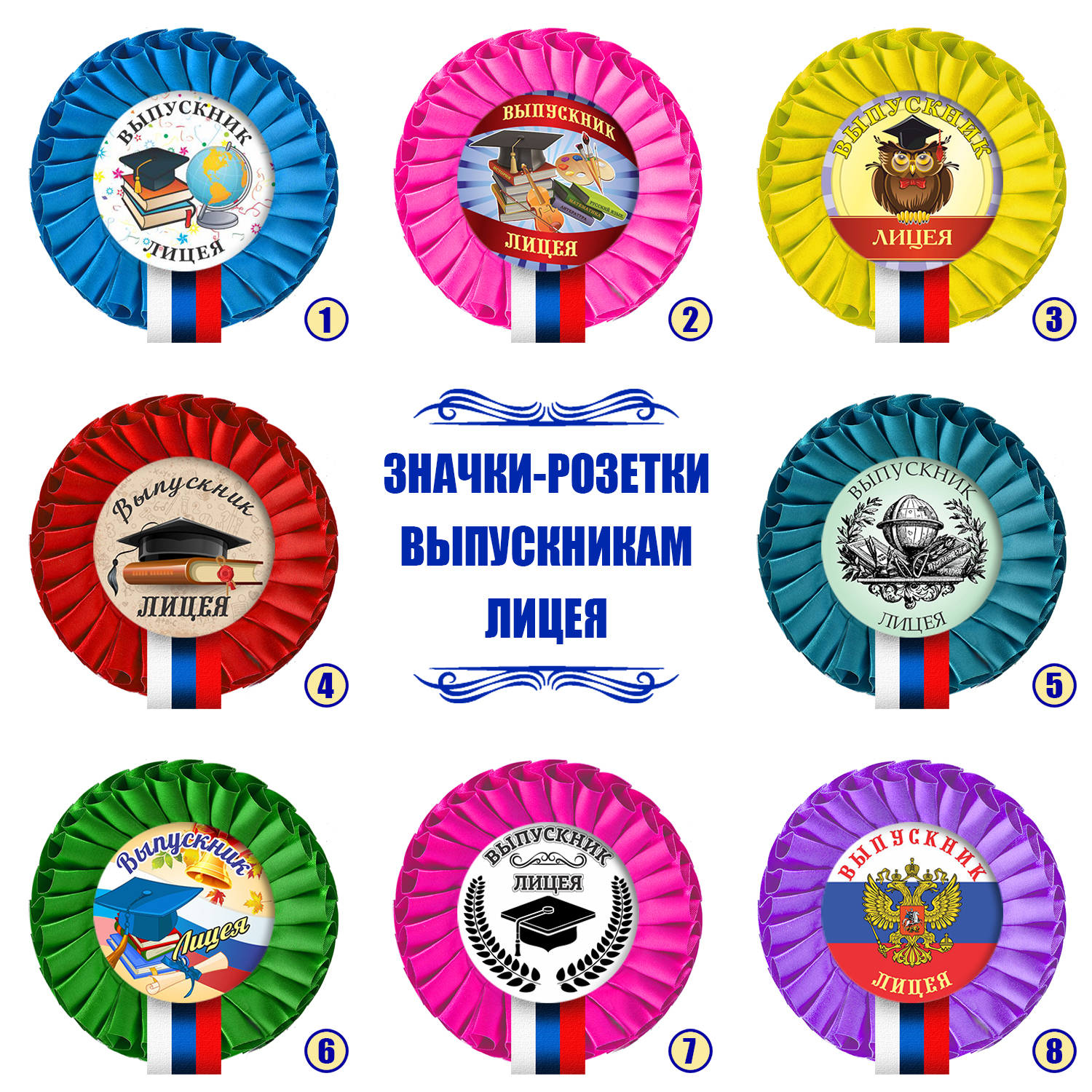 Одноярусная розетка, серединка из прочного пластика с яркой картинкой. На обороте булавка с удобным креплением. Замечательный памятный подарок на окончание учебного заведения, который дополнит образ выпускника.