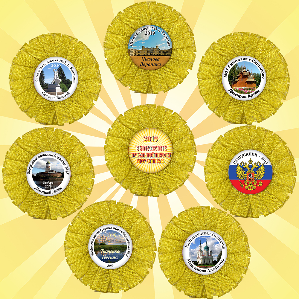 Индивидуальная одноярусная розетка, серединка из прочного пластика с яркой картинкой. На обороте булавка с удобным креплением. Замечательный памятный подарок на окончание учебного заведения, который дополнит образ выпускника.