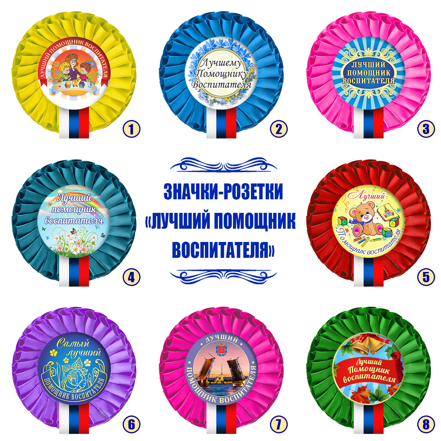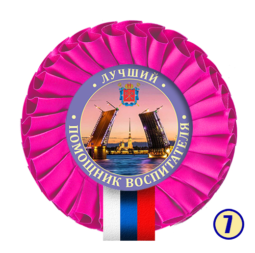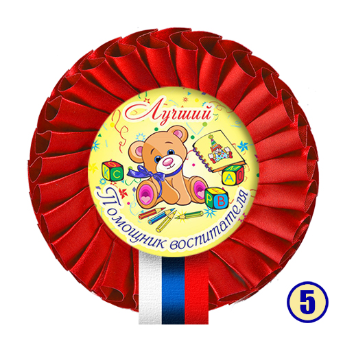 Значок-розетка "Лучший помощник воспитателя" с лентой-триколор