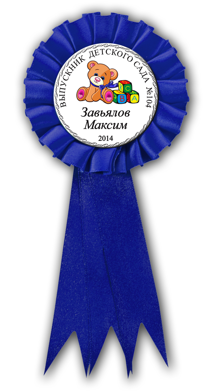 Образец надписи на именном значке-розетке из атласной ленты *Выпускник детского сада*