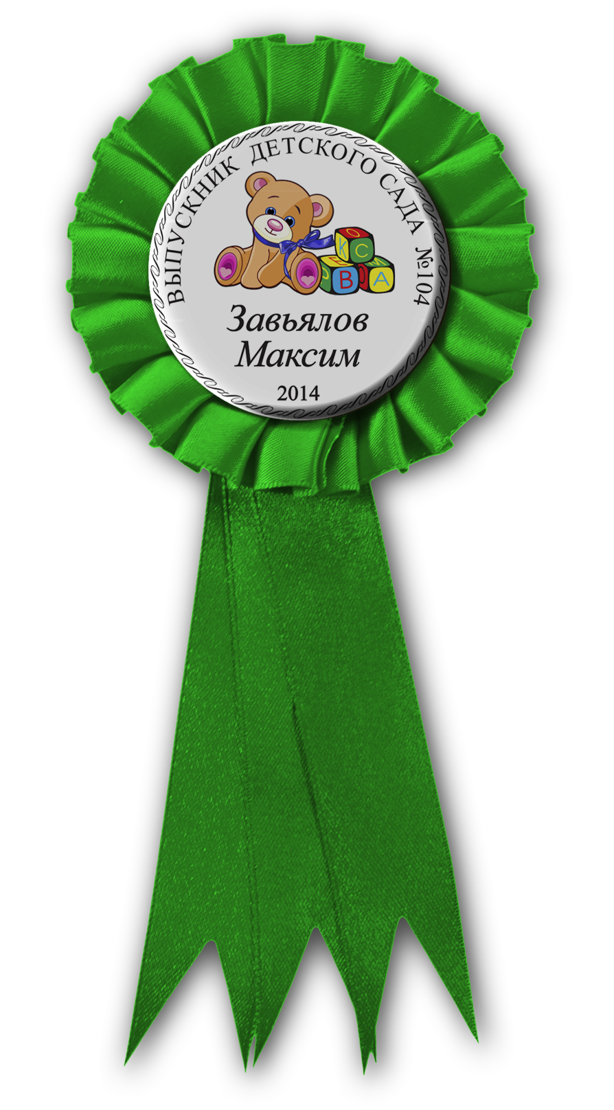 Образец надписи на именном значке-розетке из атласной ленты *Выпускник детского сада*