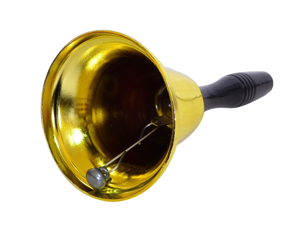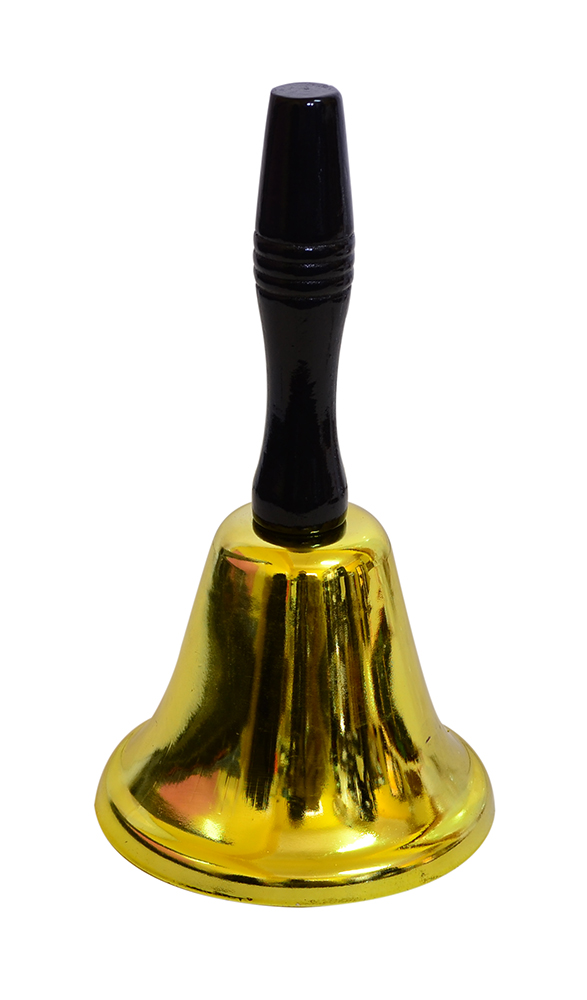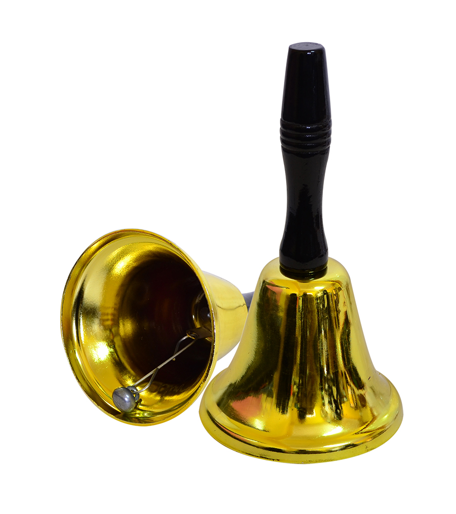 Металлический колокольчик с язычком и удобной пластиковой ручкой.
