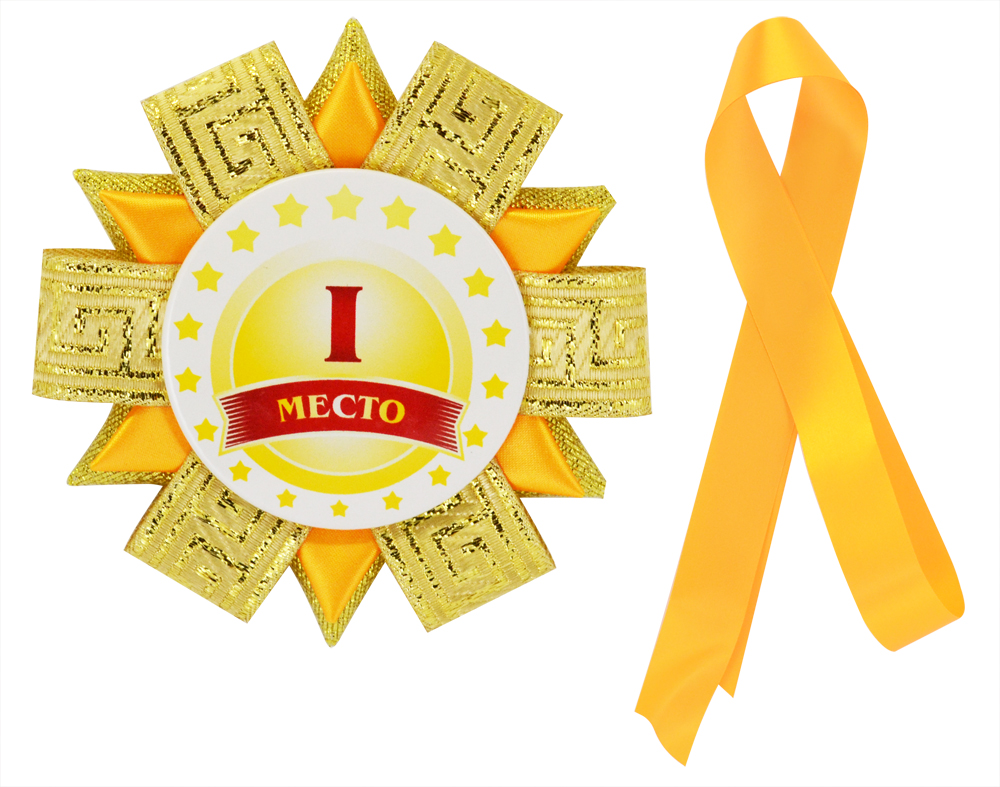 Значок-розетка изготовлен из атласной ленты и парчи, серединка - из металла и прочного пластика с яркой картинкой. На обороте булавка с удобным креплением.