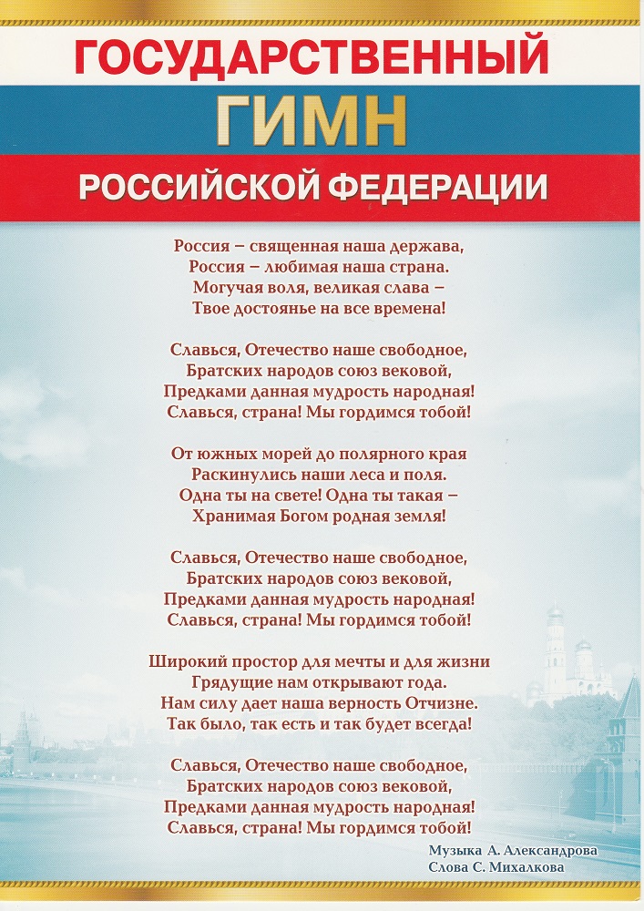 Плакат с государственной символикой Российской Федерации. Идеально подходит для использования в детских, школьных учреждениях, а также в офисах. Высокое качество печати, строгий дизайн подчеркивают важность и статусность главных символов страны.