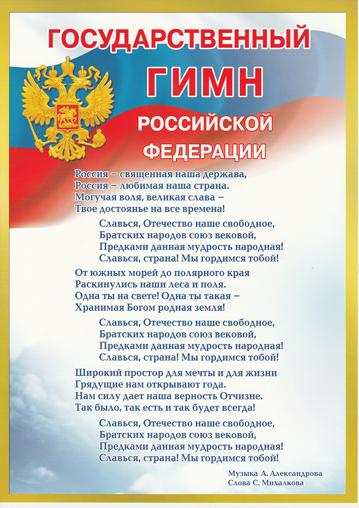Плакат с государственной символикой Российской Федерации. Идеально подходит для использования в детских, школьных учреждениях, а также в офисах. Высокое качество печати, строгий дизайн подчеркивают важность и статусность главных символов страны.