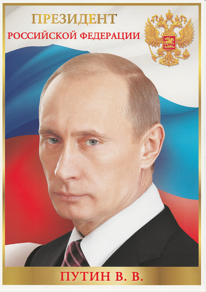 Портрет Президента Российской Федерации Владимира Владимировича Путина размещается в кабинетах руководителей государственных учреждений. Такое изображение подойдет и для кабинета директора школы, и для учительской, а можно разместить его и в учебных классах.