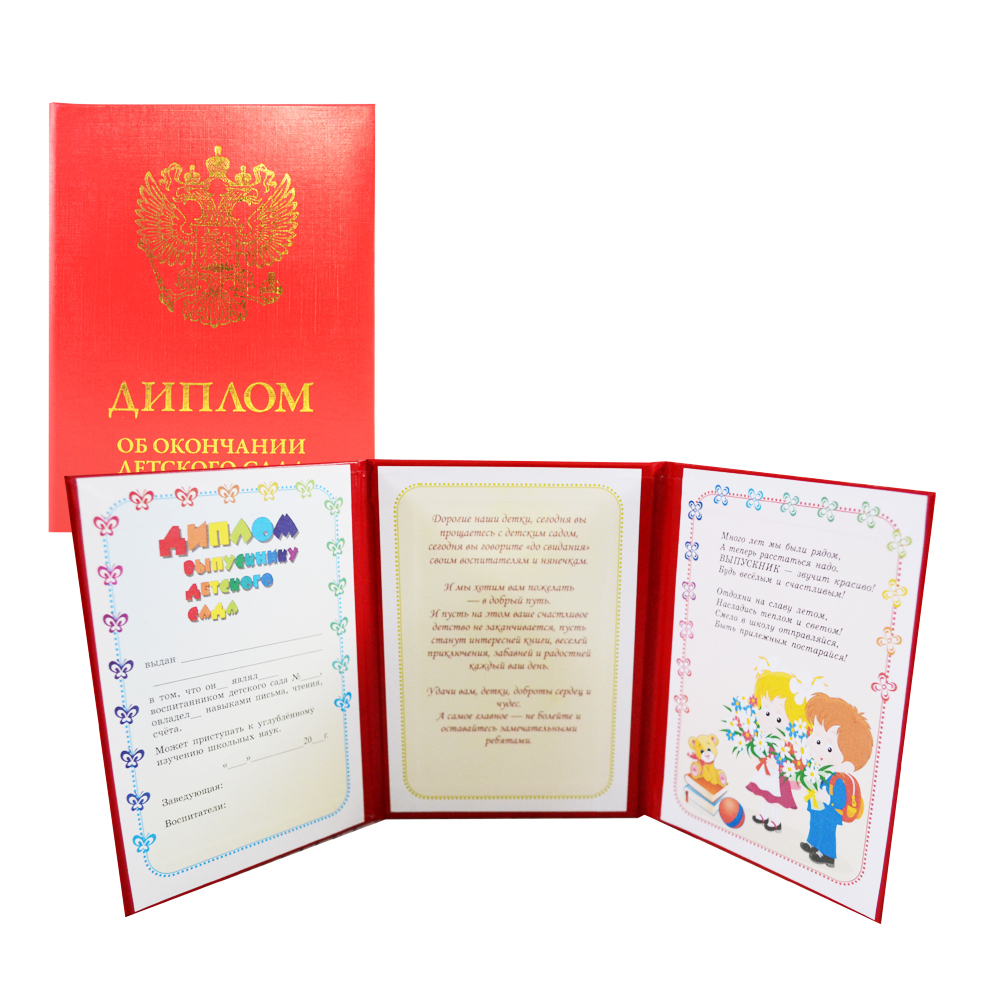 - на левом развороте - ДИПЛОМ для внесения личных данных ребенка