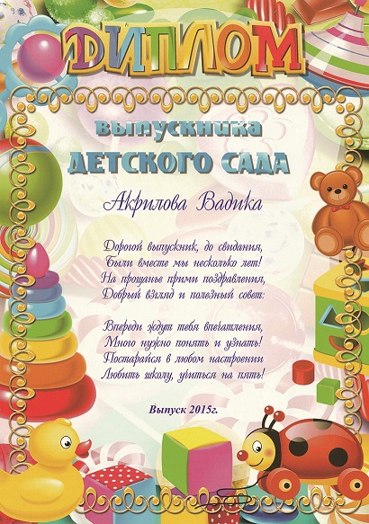 В нашем магазине Вы, можете заказать бланки именных дипломов для Выпускников детского сада.