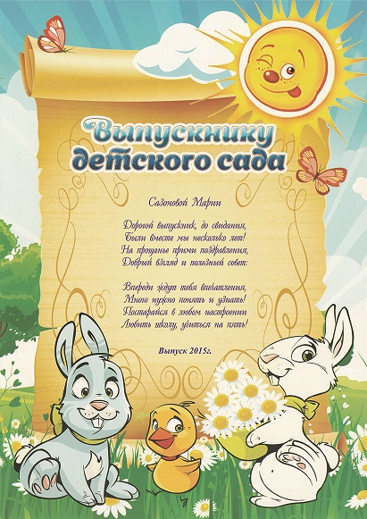 Образец именного памятного диплома "Выпускнику детского сада"*