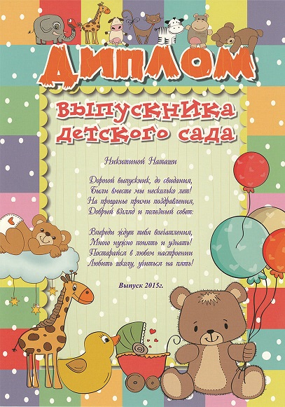 Образец именного памятного диплома "Выпускнику детского сада"
