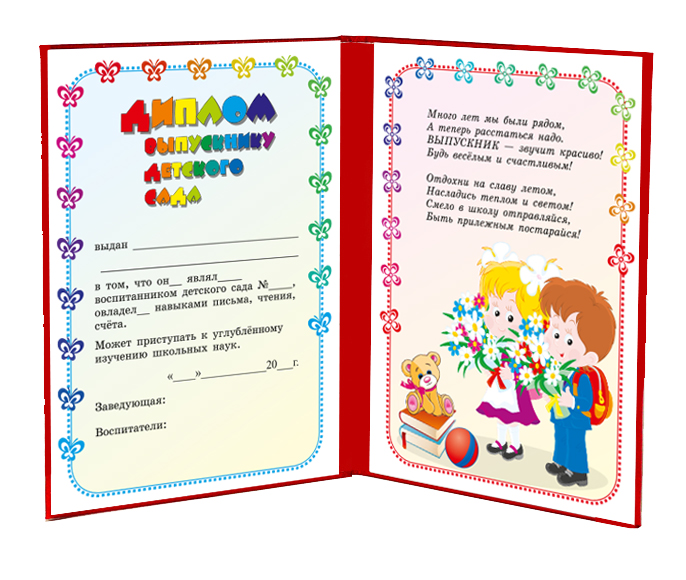 на левом развороте - ДИПЛОМ для внесения личных данных ребенка