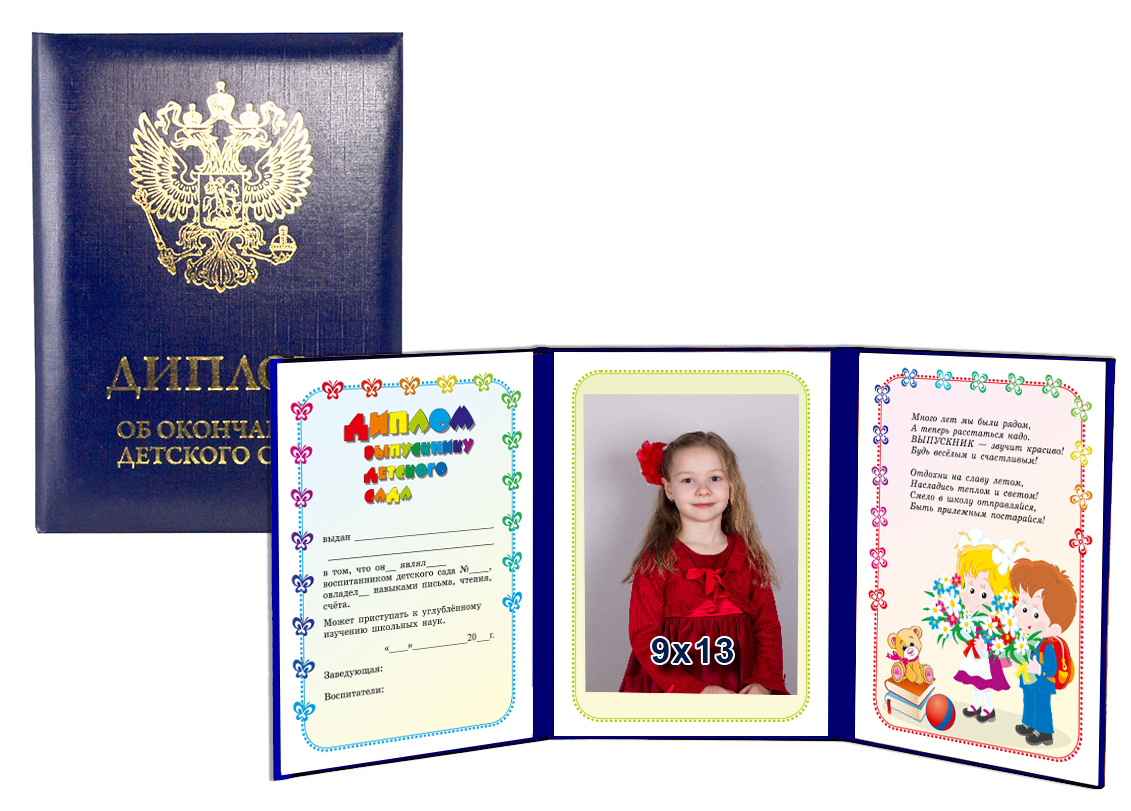 на левом развороте - ДИПЛОМ для внесения личных данных ребенка