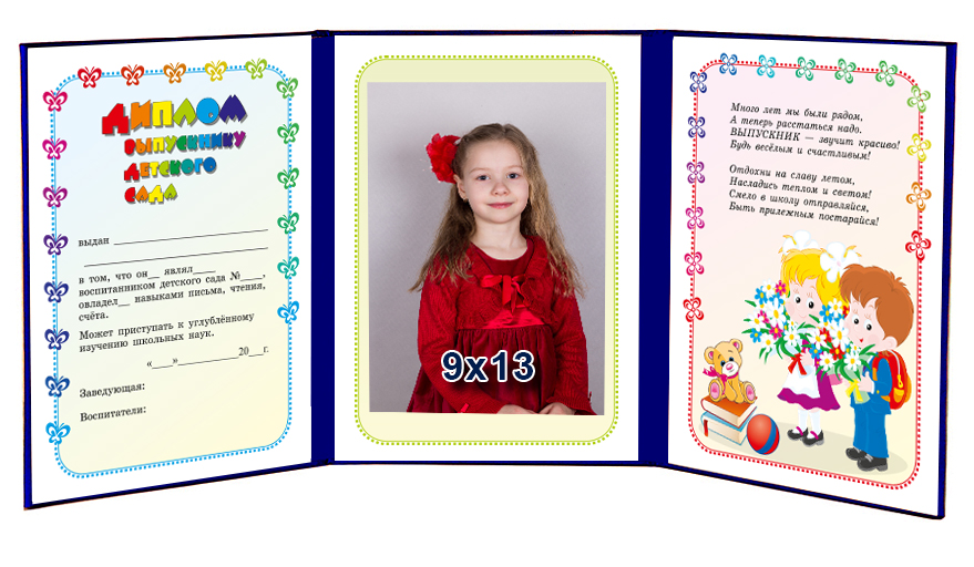 Памятный диплом синего цвета *Выпускник детского сада* 3 створки Девочка и Мальчик*