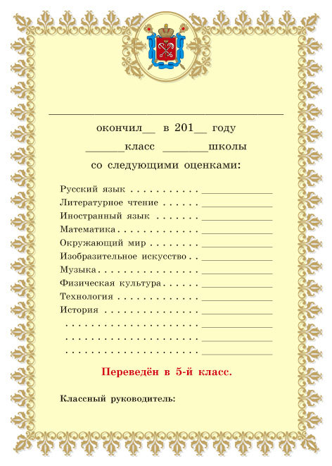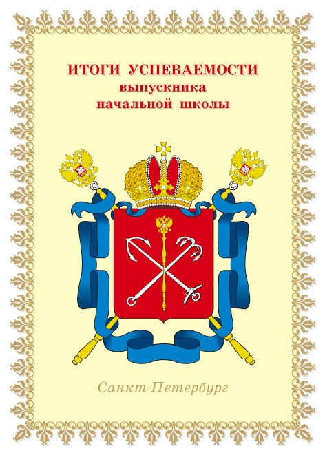 Стильный вкладыш успеваемости выпускника начальной школы используется на выпускных по факту окончания 1-3 классов школы. Дизайн изделия разработан специально для начальных школ СПб.