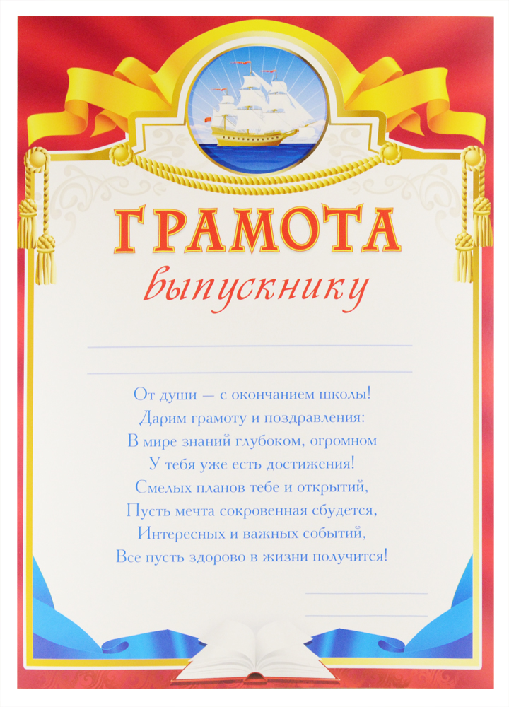 Разлинованная грамота из мелованного картона, позволяет красиво заполнить бланк от руки, при этом чернила не растекутся благодаря особому покрытию на лицевой стороне. Имеет оригинальное поздравление в стихотворной форме.