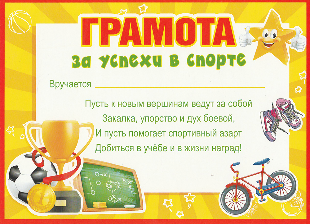 Грамота А5, 10 штук в упаковке, "За успехи в спорте", горизонтальная, 086.631