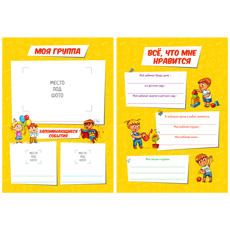 Папка-портфолио ArtSpace для школьника формата А4 на кольцах станет надёжным помощником для учащегося. Папка размером 245*320 мм изготовлена из твёрдого картона с глянцевой ламинацией и ярким весёлым рисунком. На 4 металлических кольцах держатся 20 файлов плотностью 60 мкм. В нем можно хранить всевозможные грамоты, дипломы, фотографии и другие достижения дошкольника. Также в комплект входят вкладыши из плотной мелованной бумаги плотностью 115 г/м2 с разделами: "Это я", "Моя семья", "Мои лучшие друзья", "Мой детский сад", "Моя группа", "Все, что мне нравится", "Мои планы и мечты", "Мое творчество", "Мои достижения" и "Мои путешествия".
