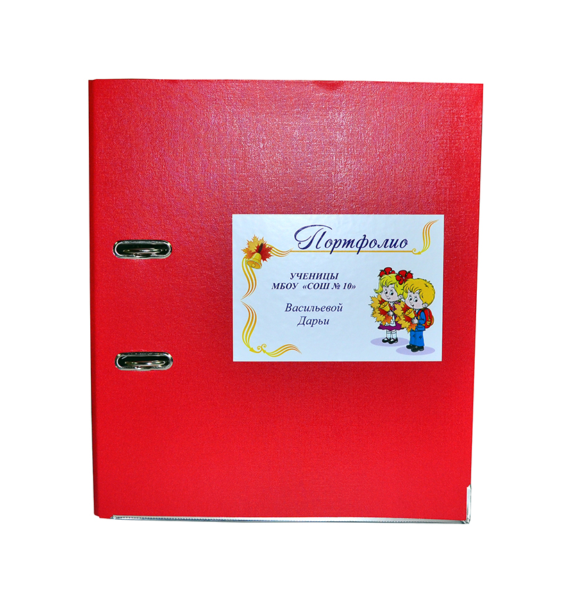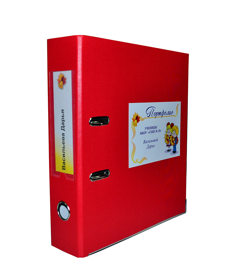 Это большая папка (возможно разместить до 500 файлов), на которой красиво нанесены имя и учебное заведение ученика.