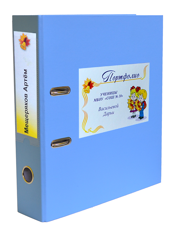 Это большая папка (возможно разместить до 500 файлов), на которой красиво нанесены имя и учебное заведение ученика.