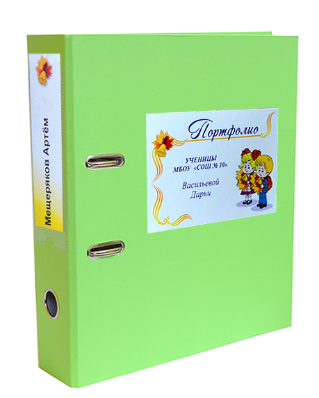 Это большая папка (возможно разместить до 500 файлов), на которой красиво нанесены имя и учебное заведение ученика.