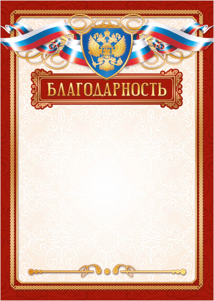Благодарность формата А4. Благодаря тому, что благодарность сделана из бумаги, на ней можно не только написать текст от руки, но и напечатать всю информацию на практически любом принтере.