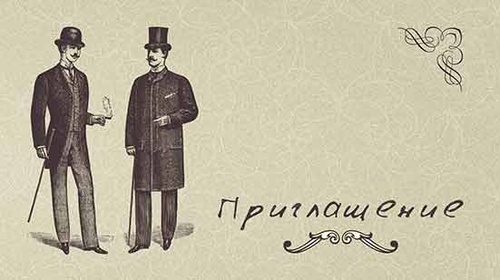 Бланк приглашения складывается пополам и имеет горизонтальное расположение. Внешний блок содержит иллюстрации, внутренний - иллюстрации и разлиновку для текста.