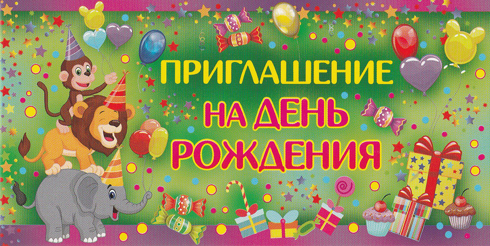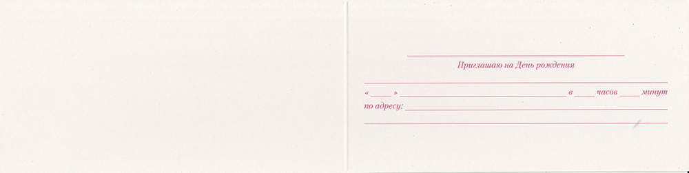 Бланк приглашения складывается пополам и имеет горизонтальное расположение. Внешний блок содержит иллюстрации оригинального дизайна, внутренний - иллюстрации и разлиновку для текста.