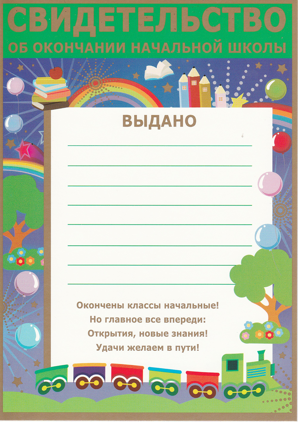 Свидетельство об окончании начальной школы, пантон бронза 01.721.00