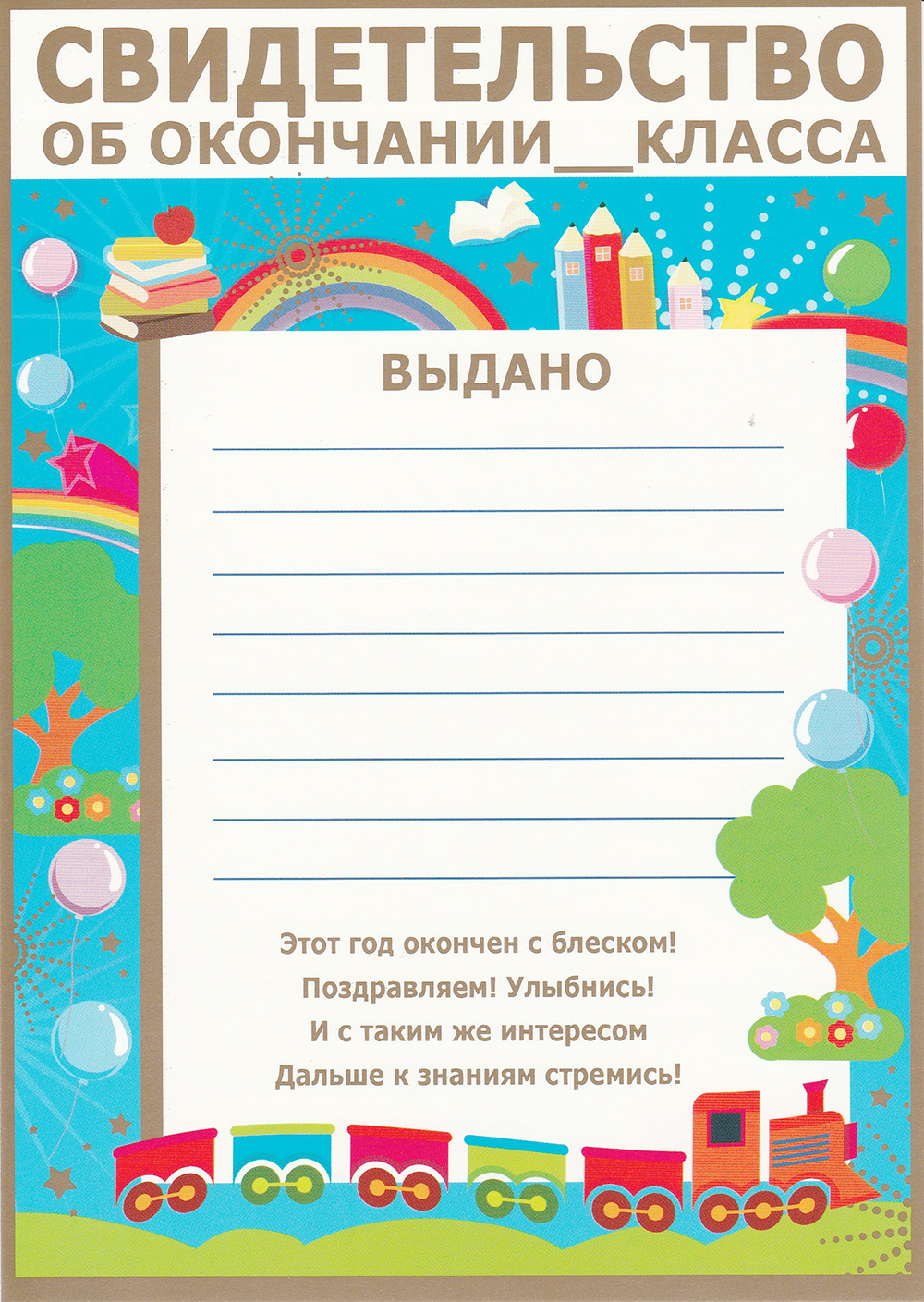 Свидетельство А5 "Об окончании __ класса", 10 штук , пантон бронза 01.722.00