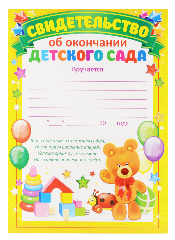 Свидетельство А5 "Об окончании детского сада" 20 штук в упаковке 85.219