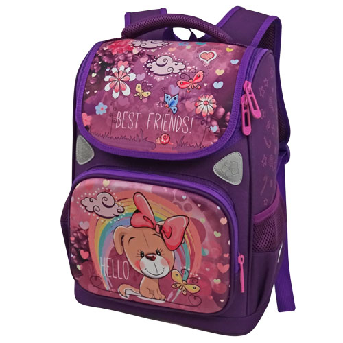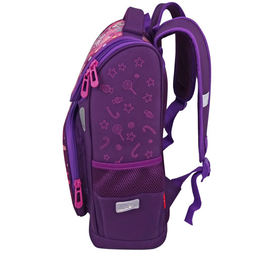 Ученический ранец с уплотненной пропенненной спинкой и регулируемыми лямками имеет одно отделение и карман на молнии, а так же боковые карманы на сетке. В основном отделении расположены разделители для тетрадей и учебников, адресник.