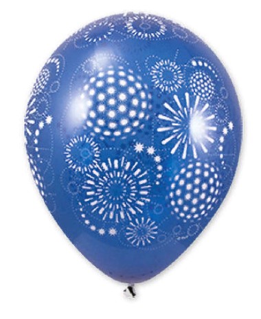 Высококачественный шар из натурального латекса. Ассорти из 10-12 цветов (в случайном соотношении), одного тип - кристалл - яркий, прозрачный шар. Шары с пятисторонним - круговая печать, крупным шелкографическим рисунком "Фейерверк". Предназначен для розничной продажи воздушных шариков. Идеальный ассортимент для праздничных оформлений, т.к. при плетении из него гирлянд - рисунок будет очень хорошо виден.